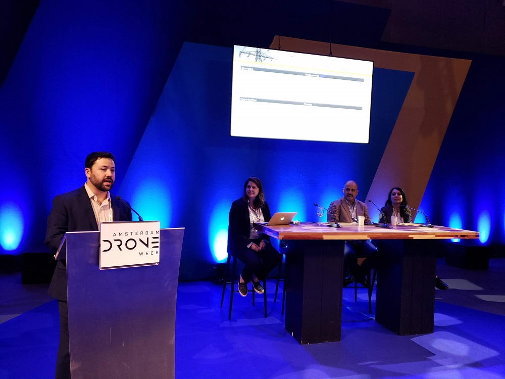 Miriam McNabb from DroneLife moderated the panel that included Amit Ganjoo from ANRA Technologies, Michael Hartnack from Guidehouse (formerly Navigant Research) and Elisabeth Perez Garcia from everis. The three presented a variety of info and insight about commercial applications of drones across the world and then had a discussion that explored many of these insights.