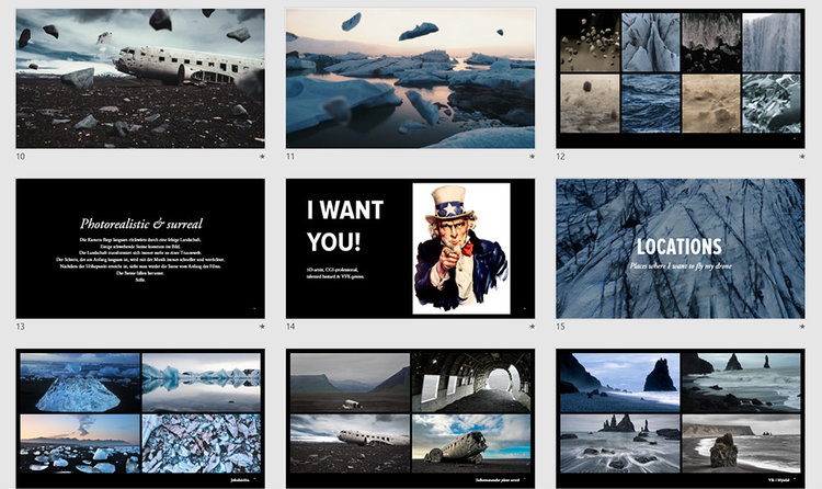 Jacob’s concept presentation where he explained the basic idea, did some research about locations and showed some rough drafts of the visuals using Adobe Photoshop.