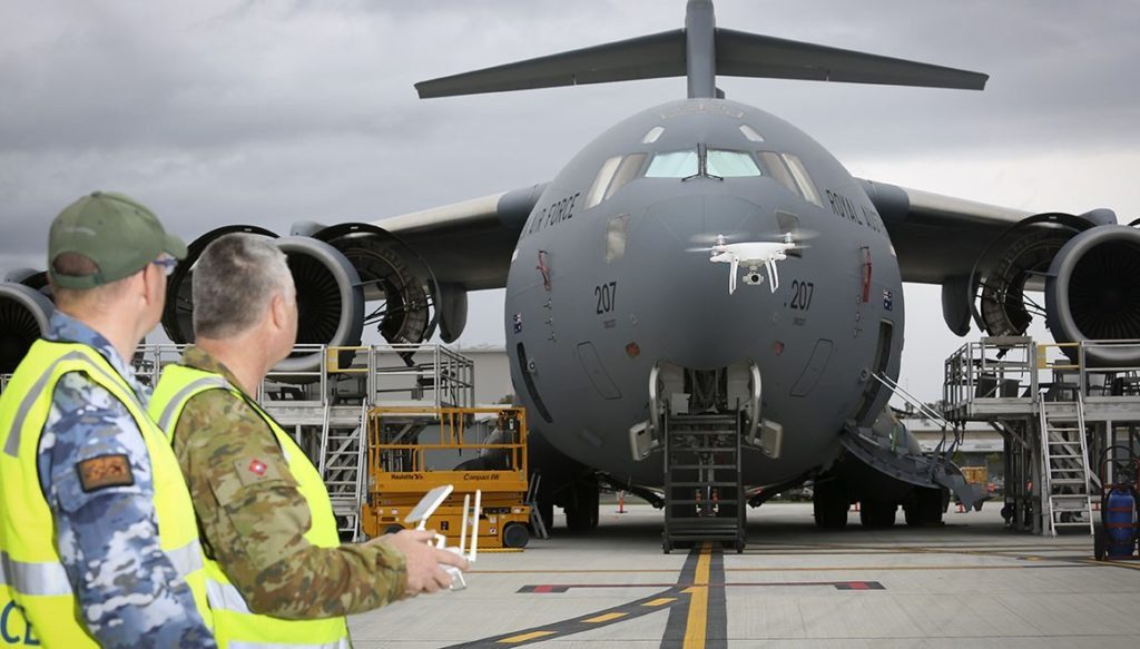 The Australian Airforce’s C-17A aircraft – a large military transport plane – undergo inspections every 180 days. This can now be done in less than 30 minutes with the help of a DJI drone.