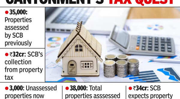 “We anticipate a rise in SCB’s property tax revenue to ₹34 crore this year due to the augmented property count compared to last year’s figures. In the preceding fiscal year 2023-24, SCB garnered nearly ₹32 crore from property tax and anticipates an additional ₹2 crore,” a senior SCB official told TOI.