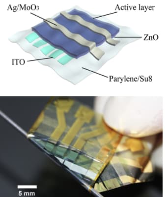 Flexible organic solar cell. (Image courtesy of Joule.)
