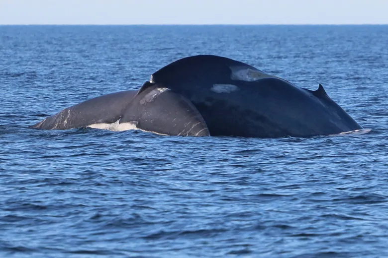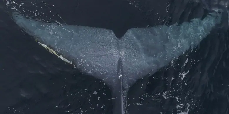 Unlike humpbacks, for example, fin and blue whales do not generally raise their tails at the surface, which can make it hard to detect the areas most prone to entanglement scarring — the tail fluke and tapering area near the tail called the caudal peduncle.