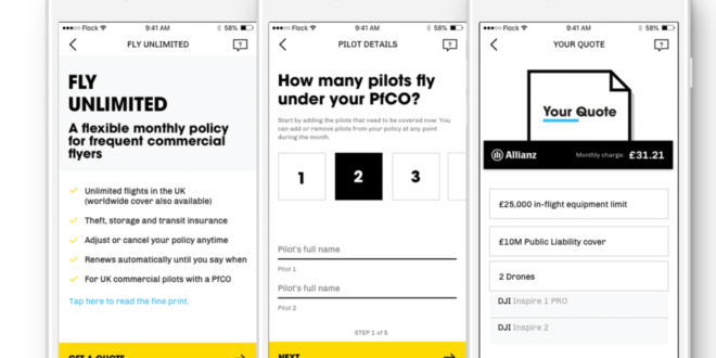 Flock’s Fly Unlimited policies are underwritten by its global insurance partner, Allianz. Cover starts from £24.95 a month, and pricing is driven by the risk-insights Flock has gathered through insuring thousands of drone flights via its Pay-as-you-fly option.