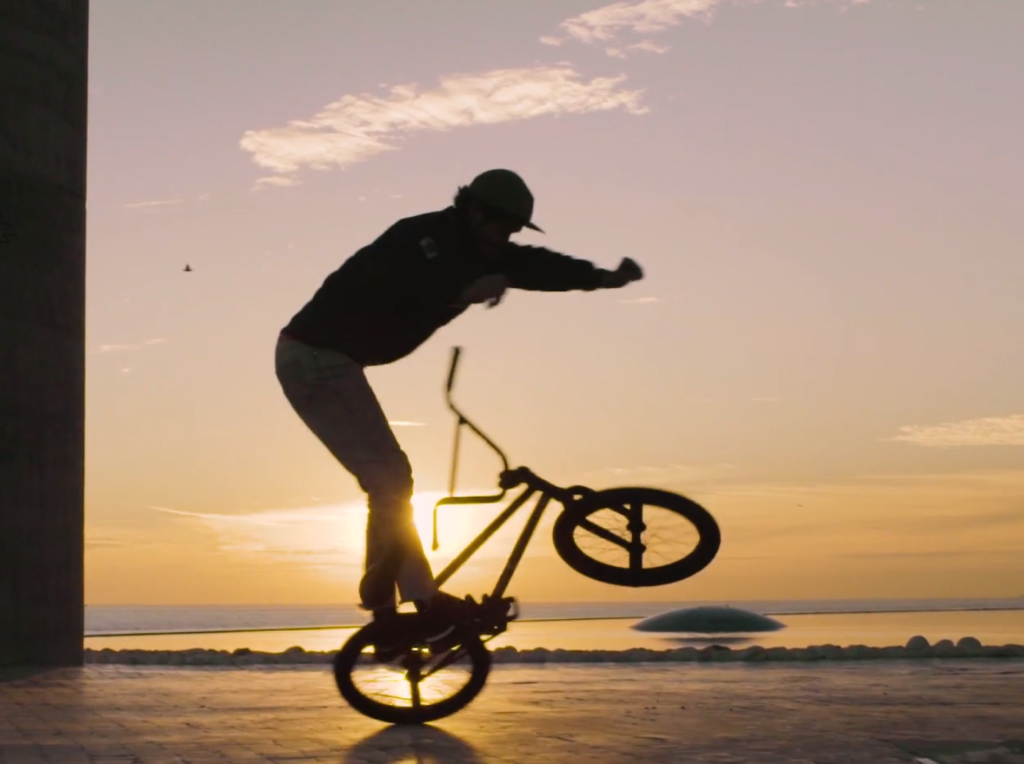 The name “Calçada Portuguesa” means Portuguese cobblestones. Traditionally they form decorative mosaics underfoot with a combination of white limestone and black basalt, which Bacalhau captured in his film. The focus of the clip is French BMX artist Matthias Dandois, who performs stunts across the Portuguese capital.