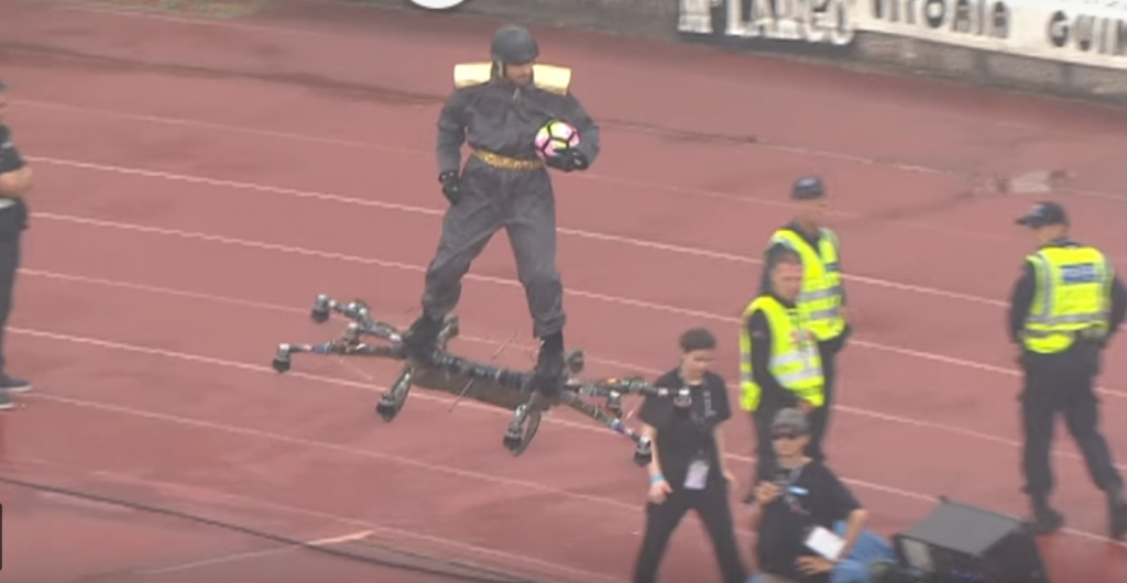 Drones are slowly creeping into extra points of our day by day lives. Soccer followers in Portugal should have realized as a lot by now, after a person standing on high of a hoverboard/drone hybrid flew across the stadium earlier than delivering the match ball to the referee. The dramatic Man Riding Drone isn’t a headline we’ve used earlier than, however we predict it’s warranted on this case.