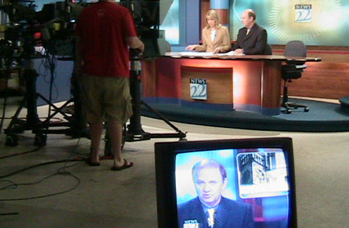 One old version of the WYOU ‘News 22″ logo on the station’s old set.