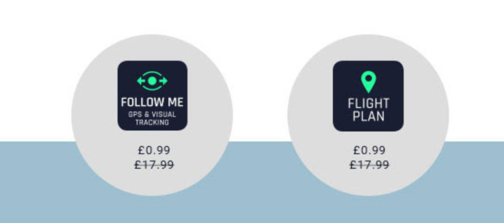 In a move that suggests Parrot is backing down on (and possibly regretting) charging extra for Follow Me and Flight Plan modes, the French manufacturer has decided to cut the prices down from £17.99 to just £0.99. They are pretty much giving the modes away.