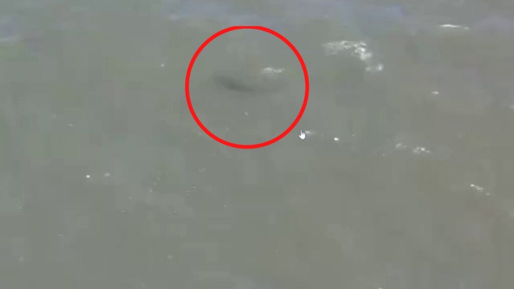 NYPD drone footage of the shark showed the predator lurking in the shallow, murky waters just beyond the surf break off the beach.