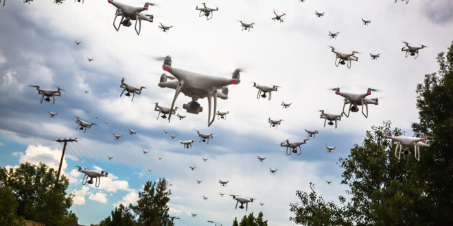 Now, we have drone swarms developed for use by the military. Deployed from fighter jets, the Perdix Drone Swarm is used to target enemy positions. Flying like a swarm of angry hornets, these tiny UAVs, constructed from easily replaceable 3D-printed parts are used to literally swarm enemy defenses jamming their radars.