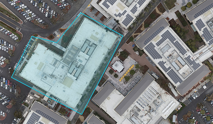 Here’s a bit of an orthomosaic map of the Facebook campus (view the total, interactive map right here):
